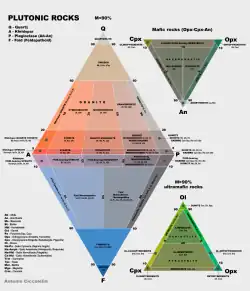 - ^ Le Bas, M. J.; Streckeisen, A. L. (1991). "The IUGS systematics of igneous rocks". Journal of the Geological Society. 148 (5): 825–833. Bibcode:1991JGSoc.148..825L. CiteSeerX 10.1.1.692.4446. doi:10.1144/gsjgs.148.5.0825. S2CID 28548230.