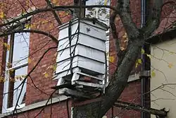 South of the town centre, suburban housing takes the form of late-Victorian and Edwardian brick, terraced and villa houses in grid-plan layouts, initially built for industrial workers and now largely owned or let privately.[86] Alongside some housing in Harlaxton Road (A607), most of these streets cluster round the railway station and nearby retail and industrial units in an area known as Spittlegate (also spelled Spitalgate or Spittalgate), the town cemetery – an area called New Somerby in older maps – and the Wharf Road, London Road and Bridge End Road stretches of the A52.[82][87][88] Further south-east, low-density, mostly privately owned, suburban housing estates of the 1970s and 1980s cluster round the A52, marking the edge of the town's urban area in an area of rising ground that forms part of Somerby Hill.[89] Further east, off the A52, are the Prince William of Gloucester Barracks, on the brow of the hill.[82][90]