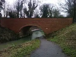 Grantham Canal, which opened in 1797,[81] closely follows the route of the Mowbeck from Echo Farm into the town. West of there it cuts through a valley north of Harlaxton into the Vale of Belvoir, eventually reaching West Bridgford near Nottingham.[82]