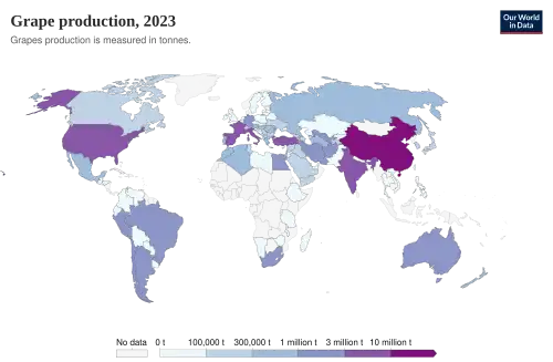 18. ^ "Grape production in 2023, Crops/Regions/World list/Production Quantity/Year (pick lists)". UN Food and Agriculture Organization, Corporate Statistical Database (FAOSTAT). 2025. Retrieved 9 April 2025.
