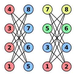 The simplest interesting case is an n-cycle. Richard Cole and Uzi Vishkin[29] show that there is a distributed algorithm that reduces the number of colors from n to O(log n) in one synchronous communication step. By iterating the same procedure, it is possible to obtain a 3-coloring of an n-cycle in O(log* n) communication steps (assuming that we have unique node identifiers).