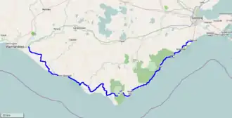 A prime tourist attraction,[5] much of the road hugs the coastline along what is known, east of the Otway Ranges, as the Surf Coast[6] and, west of Cape Otway, as the Shipwreck Coast.[7] It provides extensive views over Bass Strait and the Southern Ocean.