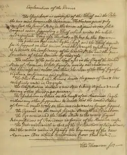 The primary official explanation of the symbolism of the great seal was given by Charles Thomson upon presenting the final design for adoption by Congress. He wrote: