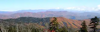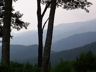 ![]() The Smoky Mountains viewed from atop Mount Le Conte in Sevier County, Tennessee, in April 2007 | |