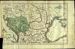 Following the growing nationalistic tendency in Europe from the 18th century onwards (as exemplified in the unification of Italy), Serbs in Serbia – after first achieving the recognition of the Principality of Serbia within the Ottoman Empire in 1817 – experienced a popular desire for full unification with the Serbs of the remaining territories, mainly those living in neighbouring entities.[4] However, as stated by Christopher Clark, the "underpinning the idea of the 'unification of all Serbs' was a mental image of Serbia that bore little relation to the political map of the Balkans at the turn of the twentieth century", and the "historical template" for the Serbian state was the restoration of the Serbian Empire during the time of Stefan Dušan (1346–1355).[5] Although the empire was short-lived, multi-ethnic and did not include some territories (e.g. Bosnia), the restoration was perceived as a "historical right" compatible with creating a monoethnic nation-state, as the "Serb patriots saw no inconsistency here, since they argued that virtually all the inhabitants of these lands were essentially Serbs".[6] These aspirations were also reproduced in books and maps, for example by Dimitrije Davidović (1821 and 1846), Miloš Milojević (1877), Spiridon Gopčević (1889), Vladan Đorđević (1902), but also in Europe by Apollon Aleksandrovich Maykov (1857), Henri Thiers (1862), Alexander Pypin and Włodzimierz Spasowicz (1879), Ernest Denis (1915), due to the Serbian diplomatic propaganda.[7][8][9]