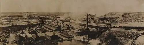 Rich deposits of nickel sulphide ore were discovered in the Sudbury Basin geological formation. The construction of the railway allowed exploitation of these mineral resources and shipment of the commodities to markets and ports, as well as large-scale lumber extraction.[23] In 1886 the Canadian Copper Company and others besides had been formed with the idea to exploit the region's natural wealth,[22] and by 1888 the Copper Cliff smelter was born.[24]