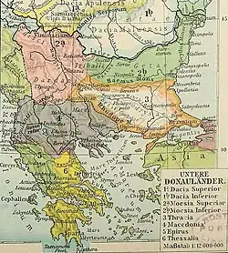 Greece in the Roman era (Greek: Έλλάς, Latin: Graecia) describes the period of ancient Greece (roughly, the territory of the modern nation-state of Greece) as well as that of the Greek people and the areas they inhabited and ruled historically, from the Roman Republic's conquest of mainland Greece in 146 BC until the division of the Roman Empire in late antiquity.[1][2][3] It covers the periods when Greece was dominated first by the Roman Republic and then by the Roman Empire.[4]