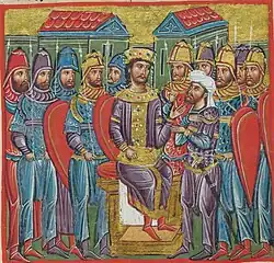 A distinct Greek identity re-emerged in the 11th century in educated circles and became more forceful after the fall of Constantinople to the Crusaders of the Fourth Crusade in 1204.[118] In the Empire of Nicaea, a small circle of the elite used the term "Hellene" as a term of self-identification.[119] For example, in a letter to Pope Gregory IX, the Nicaean emperor John III Doukas Vatatzes (r. 1221–1254) claimed to have received the gift of royalty from Constantine the Great, and put emphasis on his "Hellenic" descent, exalting the wisdom of the Greek people.[120] After the Byzantines recaptured Constantinople, however, in 1261, Rhomaioi became again dominant as a term for self-description and there are few traces of Hellene (Έλληνας), such as in the writings of George Gemistos Plethon,[121] who abandoned Christianity and in whose writings culminated the secular tendency in the interest in the classical past.[118] However, it was the combination of Orthodox Christianity with a specifically Greek identity that shaped the Greeks' notion of themselves in the empire's twilight years.[118] In the twilight years of the Byzantine Empire, prominent Byzantine personalities proposed referring to the Byzantine Emperor as the "Emperor of the Hellenes".[122][123] These largely rhetorical expressions of Hellenic identity were confined within intellectual circles, but were continued by Byzantine intellectuals who participated in the Italian Renaissance.[124]