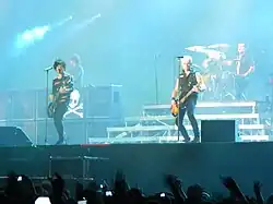 21st Century Breakdown was released on May 15, 2009.[105][106] The album received mainly positive reception from critics, who gave it an average rating between 3 and 4 stars.[107][108] It reached number one in fourteen countries and was certified gold or platinum in each, achieving Green Day's best overall chart performance to date.[109] The band started playing shows in California in April and early May. These were the group's first live shows in about three years. Green Day went on a world tour starting in North America in July 2009, and continued through the rest of 2009 and early 2010.[110] The album won Grammy Award for Best Rock Album at the 52nd Grammy Awards on January 31, 2010.[37] As of December 2010, 21st Century Breakdown has sold 1,005,000 copies in the US.[111]