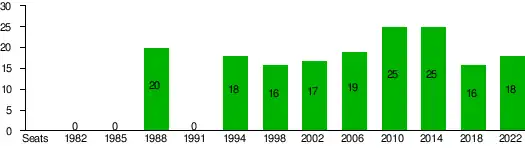 Sparked by the anti-nuclear power movement following the 1980 nuclear power referendum,[11] the party was founded in 1981 out of a discontent with the existing parties' environmental policies. In the 1988 general election, they won seats in the Swedish Riksdag for the first time, capturing 5.5 percent of the vote, and becoming the first new party to enter parliament in seventy years.[12] Three years later, they dropped back below the 4 percent threshold.