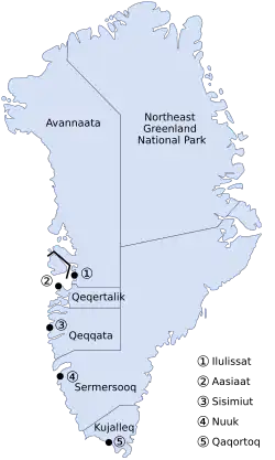 199. ^ "ATV-sporet mellem Sisimiut og Kangerlussuaq bliver færdig næste år" (in Danish). Qeqqata Kommunia. 25 May 2023. Archived from the original on 30 December 2023. Retrieved 30 December 2023.