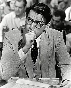 Other notable films in which he appeared include Moby Dick (1956, and its 1998 mini-series), The Guns of Navarone (1961), Cape Fear (1962, and its 1991 remake), The Omen (1976), and The Boys from Brazil (1978). Throughout his career, he often portrayed protagonists with "moral fiber".[1] Gentleman's Agreement (1947) centered on topics of antisemitism, while Peck's character in Twelve O'Clock High (1949) dealt with the challenges of military leadership and post-traumatic stress disorder during World War II. He won the Academy Award for Best Actor for his performance as Atticus Finch in To Kill a Mockingbird (1962), an adaptation of the modern classic of the same name which revolved around racial inequality, for which he received acclaim. In 1983, he starred opposite Christopher Plummer in The Scarlet and The Black as Hugh O'Flaherty, a Catholic priest who saved thousands of escaped Allied POWs and Jewish people in Rome during the Second World War.