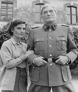He reunited with previous collaborators King, Hayward, and Gardner in The Snows of Kilimanjaro (1952), an adaptation of a short story by Ernest Hemingway.[172] The film stars Peck as a self-concerned writer looking back on his life, particularly his romance with his first wife (Gardner), while he slowly dies from an accidental wound while on an African hunting expedition with his current wife (Hayward) nursing him.[173] The film was praised for its cinematography and direction.[ah][ai] Most reviews praise Peck's performance, with TV Guide saying the story is "enacted with power and conviction by Peck," although some criticized his "bland" expressions.[178] Peck, who at that time was married to Finnish American-born Greta Kukkonen, even made a two-day visit to Helsinki in January 1953, participating in an invited guest premiere of The Snows of Kilimanjaro that premiered in Finland.[179] The Snows of Kilimanjaro was a box office hit and ranked as the fourth-highest-grossing movie of 1952.[42]