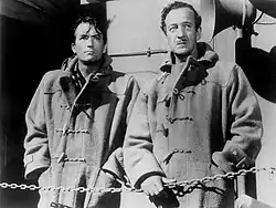 Peck returned to swashbucklers in The World in His Arms (1952), directed by Raoul Walsh, who had also directed Captain Horatio Hornblower. Peck portrays a seal-hunting ship captain in 1850 San Francisco who romances a Russian countess played by Ann Blyth and ends up engaging a rival sealer played by Anthony Quinn in a sailing race to Alaska.[164][165] The film was given positive reviews by both contemporary and modern critics.[ag][167][168] All Movie commented that Peck is "a superb actor, who brings enormous skill to the part, but who simply lacks the overt derring-do and danger that is part of the role."[169] The film was moderately successful, more so in the UK than in North America.[170][171]