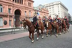 Unlike most other units that carried the title of "grenadiers", the Argentine Grenadiers are a cavalry unit, and continue to mount horses for ceremonial purposes, as well as carrying lances and cavalry sabers.