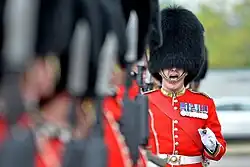 The British Army's Guards Division continue to wear the bearskin cap with its full dress uniform, a custom associated with the Grenadier Guards defeat of the French Imperial Guard in 1815.
