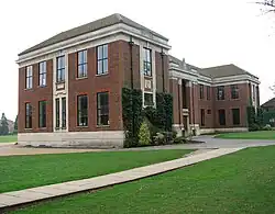 The New School (by the architect Sir John Simpson) was opened by Sir Evelyn Wood on 30 September 1903.[24] This consisted of School House (renamed as Howson's in 1919) and the Main Building, including the Big School hall. Woodlands was acquired and opened as a new house in 1905, the school's first swimming pool was opened in 1907,[25] and Farfield was built in 1911. The School Chapel was completed in 1916, during the Great War, during which one hundred and six Old Greshamians were killed.[26]