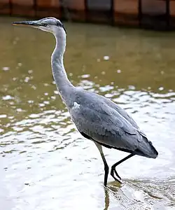 It is closely related and similar to the North American great blue heron (Ardea herodias), which differs in being larger, and having chestnut-brown flanks and thighs; and to the cocoi heron (Ardea cocoi) from South America, with which it forms a superspecies. Some authorities believe that the subspecies A. c. monicae should be considered a separate species.[6] It has been known to hybridise with the great egret (Ardea alba), the little egret (Egretta garzetta), the great blue heron and the purple heron (Ardea purpurea).[7] The Australian white-faced heron is often incorrectly called a grey heron.[8] In Ireland, the grey heron is often colloquially called a "crane".[9]
