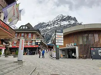 The Gondelbahn Grindelwald-Männlichen connects Grindelwald with the Männlichen and with onward travel on the Luftseilbahn Wengen-Männlichen offers an alternative route to Wengen.[24] The recently built Eiger Express, connects directly Grindelwald to Eigergletscher, on the Jungfraubahn. Both Männlichen and Eiger Express cable transport start at the Grindelwald Terminal.
