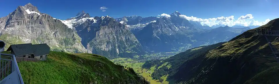 The highest peaks of the valley, from the Wellhorn and Wetterhorn to the Eiger and Mönch, are part of the Jungfrau-Aletsch protected area, a world heritage site.[10]