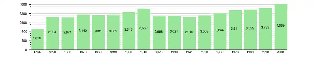 Grindelwald has a population (as of December 2020) of 3,800.[12] As of 2010, 18.0% of the population are resident foreign nationals.[13] In the period from 2000 to 2010, the population changed at a rate of −1.3%. Migration accounted for 0.2%, while births and deaths accounted for −1.7%.[14]