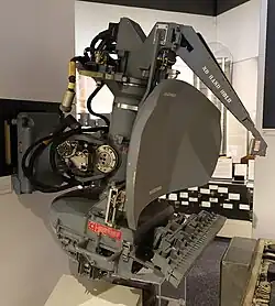 The Grumman A-6 Intruder is a two-seat twin-engined monoplane, equipped to perform carrier-based attack missions regardless of prevailing weather or light conditions.[4] The cockpit used an unusual double pane windscreen and side-by-side seating arrangement in which the pilot sat in the left seat, while the bombardier/navigator (BN) sat to the right and slightly below to give the pilot an adequate view on that side. In addition to a radar display for the BN, a unique instrumentation feature for the pilot was a cathode ray tube screen that was known as the Vertical Display Indicator (VDI). This display provided a synthetic representation of the world in front of the aircraft, along with steering cues provided by the BN, enabling head-down navigation and attack at night and in all weather conditions.[15]