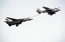 Many in the US defense establishment in general, and Naval Aviation in particular, questioned the wisdom of a shift to a shorter range carrier-based strike force, as represented by the Hornet and Super Hornet, compared to the older generation aircraft such as the Intruder and Tomcat. However, the availability of USAF Boeing KC-135 Stratotanker and McDonnell Douglas KC-10 Extender tankers modified to accommodate USN, USMC and NATO tactical aircraft in all recent conflicts was considered by certain senior decision makers in the Department of Defense to put a lesser premium on organic aerial refueling capability in the U.S. Navy's carrier air wings and self-contained range among carrier-based strike aircraft. Although the Intruder could not match the F-14's or the F/A-18's speed or air-combat capability, the A-6's range and load-carrying ability are still unmatched by newer aircraft in the fleet.[21]