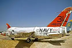 Seven U.S. Navy squadrons flew the Tiger, these included VF-21 and VF-33 in the Atlantic Fleet and VA-156 (redesignated VF-111 in January 1959), VF-24 (redesignated VF-211 in March 1959), VF-51, VF-121, and VF-191 in the Pacific Fleet.[16] The aircraft was operated from the carriers Intrepid, Lexington, Hancock, Bon Homme Richard, Shangri-La, Forrestal, Saratoga, Ranger and Independence. The F11F's career as a frontline fighter lasted only four years, largely as a result of its performance being inferior to the competing and considerably faster Vought F-8 Crusader;[2][17] further factors included the unreliability of its J65 powerplant,[16] and the inadequacy of both its range and endurance. At no point was the Tiger ever capable of sustained supersonic flight in an operational configuration.[18] The Navy opted to cancel its orders for the F11F-1P reconnaissance version, thus only 199 F11F-1 (F-11A) fighters were ever built.