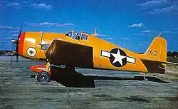 The Hellcat was used for second-line USN duties, including training and Naval Reserve squadrons, and a handful were converted to target drones.[9] In late 1952, Guided Missile Unit 90 used F6F-5K drones, each carrying a 2,000 lb (910 kg) bomb, to attack bridges in Korea. Flying from USS Boxer, the Hellcat drones were radio controlled from an escorting AD Skyraider.[59]