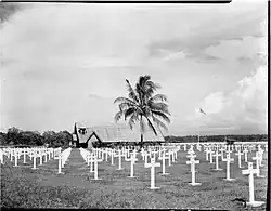 Tulagi and two nearby small islands, Gavutu and Tanambogo, were assaulted by 3,000 U.S. Marines under the command of Brigadier General William Rupertus.[37] The 886 IJN personnel manning the naval and seaplane bases on the three islands fiercely resisted the Marine landings.[38] With some difficulty, the Marines secured all three islands: Tulagi on 8 August, and Gavutu and Tanambogo by 9 August.[39] The Japanese defenders were killed almost to the last man,[40] and the Marines suffered 248 casualties.[41]