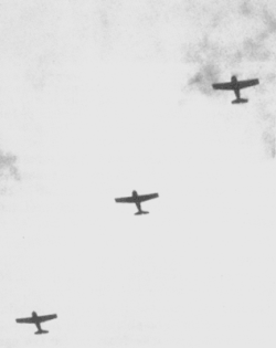 Bad weather allowed the Allied expeditionary force to arrive unseen by the Japanese on the night of 6 August and morning of 7 August, taking the defenders by surprise. This is occasionally referred to the "Midnight Raid on Guadalcanal".[33] A Japanese patrol aircraft from Tulagi had searched the general area that the Allied invasion fleet was moving through, but was unable to spot the Allied fleet due to severe storms and heavy clouds.[34] The landing force split into two groups, with one group assaulting Guadalcanal and the other Tulagi, Florida, and other nearby islands.[35] Allied warships bombarded the invasion beaches, while U.S. carrier aircraft bombed Japanese positions on the target islands and destroyed 15 Japanese seaplanes at their base near Tulagi.[36]