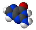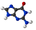 Guanine can be hydrolyzed with strong acid to glycine, ammonia, carbon dioxide, and carbon monoxide. First, guanine gets deaminated to become xanthine.[3] Guanine oxidizes more readily than adenine, the other purine-derivative base in DNA. Its high melting point of 350 °C reflects the intermolecular hydrogen bonding between the oxo and amino groups in the molecules in the crystal. Because of this intermolecular bonding, guanine is relatively insoluble in water, but it is soluble in dilute acids and bases. Among the DNA/RNA bases, guanine has the lowest oxidation potential[4] playing a key role in the oxidatively induced damage to nucleic acids. See main article guanine radical cations and DNA oxidation.