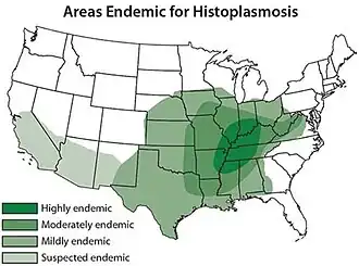 54. ^ "U.S. Histoplasmosis Maps". Centers for Disease Control and Prevention. 11 February 2019. Retrieved 10 August 2019.