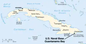 The United States assumed territorial control over the southern portion of Guantánamo Bay under the 1903 Lease.[1] The United States exercises jurisdiction and control over this territory as the home of the Guantanamo Bay Naval Base, while recognizing that Cuba retains ultimate sovereignty.[2][3]