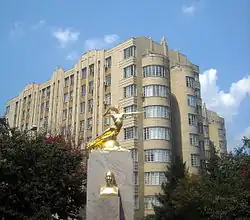 While helping to develop microwave technology, Marconi suffered nine heart attacks in the span of three years preceding his death.[96] Following the ninth heart attack, he died on 20 July 1937 in Rome at the age of 63. A state funeral was held for him. As a tribute, shops on the street where he lived were "Closed for national mourning".[97] In addition, at 6 pm the next day, the time designated for the funeral, transmitters around the world observed two minutes of silence in his honour.[98] The British Post Office also sent a message requesting that all broadcasting ships honour Marconi with two minutes of broadcasting silence.[97] His remains are housed at the Mausoleum of Guglielmo Marconi in Sasso Marconi, Emilia-Romagna, which assumed that name in his honour in 1938.[99]