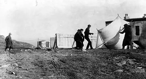 Numerous additional demonstrations followed, and Marconi began to receive international attention. In July 1897, he carried out a series of tests at La Spezia, in his home country, for the Italian government. A test for Lloyd's between The Marine Hotel in Ballycastle and Rathlin Island, both in County Antrim in Ulster, Ireland, was conducted on 6 July 1898 by George Kemp and Edward Edwin Glanville.[46] A transmission across the English Channel was accomplished on 27 March 1899, from Wimereux, France to South Foreland Lighthouse, England. Marconi set up an experimental base at the Haven Hotel, Sandbanks, Poole Harbour, Dorset, where he erected a 100-foot high mast. He became friends with the van Raaltes, the owners of Brownsea Island in Poole Harbour, and his steam yacht, the Elettra, was often moored on Brownsea or at The Haven Hotel. Marconi would later purchase the vessel after the Great War and convert it to a seaborne laboratory from where he would conduct many of his experiments. Among the Elettra's crew was Adelmo Landini, his personal radio operator, who was also an inventor.[47]