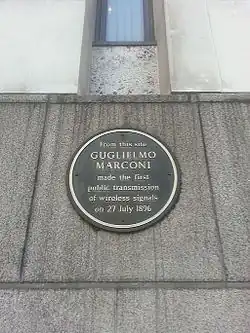 - ^ "Milestones:Marconi's Early Wireless Experiments, 1895". IEEE Global History Network. IEEE. Retrieved 29 July 2011.
