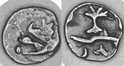 An Iron Age gold quarter stater coin, found in Guildford in 1974[8]