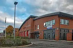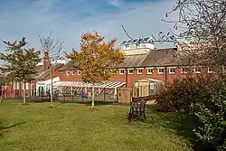 Park Barn consists of a former and present social housing estate in Guildford. It is bordered to the south by the railway line, the east by Westborough, the north by Rydes Hill and the west by Broadstreet Common.[151] The estate is home to King's College, a school for 11 – 16-year-olds. There are also a number of primary schools in the area of Park Barn, including Guildford Grove Primary School, which has a specialist sign-supported rescue base on the site that supports pupils with profound hearing impairments, known as The Lighthouse.[152] The Football team, Park Barn FC, plays in League 4 of the Guildford and Woking Alliance League.[153] Guildford City Boxing Club moved from Bellfields to Cabell Road in Park Barn in 2014.[154]
