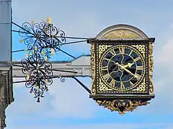 It is unclear when the first market took place at Guildford, but by 1276 one was being held in the High Street every Saturday.[85] In the 1530s, there were three markets each week, for corn (the most profitable), for cattle, and for general produce and household items. In 1561, a market house was built "beneath the Gild Hall", but by 1626 it was no longer suitable to store the "graine accustimablie sold there" and the corn market was moved to the Tun Inn on the south side of the High Street.[86] A purpose-built Corn Exchange was erected there in 1818.[87] In 1865, the market was relocated to North Street[88] and in 1895, it moved to Woodbridge Road.[89]