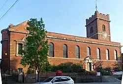 The oldest extant building in Guildford is St Mary's Church, the tower of which was built c. 1040.[22][23] Its location, on Quarry Street, may indicate that, at the time of its construction, the High Street had either not been laid out or was not the principal road.[24] There is no significant archaeological evidence of human activity in the modern town centre before the 11th century[25][26] and it is possible that, for the majority of the Saxon period, Stoke next Guildford, to the north, was the primary area of settlement.[27][note 6]
