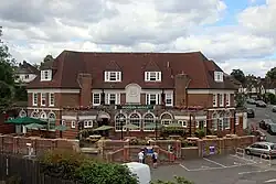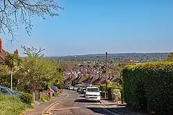 Onslow Village is a sloped suburb on the western outskirts of Guildford. It, with one outlying road continuation, forms a wedge between the A3 road and A31 roads south of the junction of the A3 and Egerton Road, Guildford's Cathedral Turn and directly below Henley Fort, the 1880s built London Defence Position and a Scheduled Monument.[143] The area consists of a number of residential streets many of which are characterised by beech hedges. Parts of Onslow Village have been designated as conservation areas,[144] enforcing a number of planning restrictions that are intended to protect the character and identity of the locality. Local amenities include the 5th Guildford Scout Group,[145] a community news website,[146] a Tennis Club[147] and Onslow Arboretum.[148] It also has its own football team, Onslow FC, established in 1986.