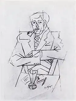Metzinger painted the first Cubist portrait of Apollinaire. In his Vie anecdotique (16 October 1911), the poet proudly writes: "I am honoured to be the first model of a Cubist painter, Jean Metzinger, for a portrait exhibited in 1910 at the Salon des Indépendants." It was not only the first Cubist portrait, according to Apollinaire, but it was also the first great portrait of the poet exhibited in public, prior to others by Louis Marcoussis, Amedeo Modigliani, Mikhail Larionov and Picasso.[9]