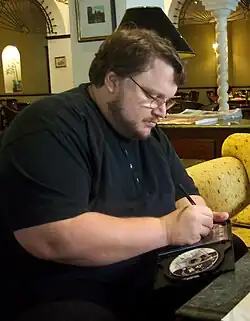 Guillermo del Toro Gómez (Spanish: [ɡiˈʝeɾmo ðel ˈtoɾo]; born 9 October 1964) is a Mexican filmmaker, author, and artist. His work has been characterized by a strong connection to fairy tales, gothicism and horror, often blending the genres, with an effort to infuse visual or poetic beauty in the grotesque.[1] He has had a lifelong fascination with monsters, which he considers symbols of great power.[2] He is known for pioneering dark fantasy in the film industry and for his use of insectile and religious imagery, his themes of Catholicism, celebrating imperfection, underworld motifs, practical special effects, and dominant amber lighting.[3][4][5]
