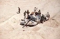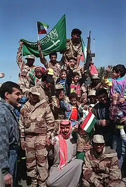Kuwaitis founded a local armed resistance movement following the Iraqi occupation of Kuwait.[87][88][89] The Kuwaiti resistance's casualty rate far exceeded that of the coalition military forces and Western hostages.[90] The resistance predominantly consisted of ordinary citizens who lacked any form of training and supervision.[90]