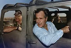 - Brands, H. W. (March 2004). "George Bush and the Gulf War of 1991". Presidential Studies Quarterly. 34 (1): 113–131. doi:10.1111/j.1741-5705.2004.00038.x. ISSN 0360-4918. JSTOR 27552567.