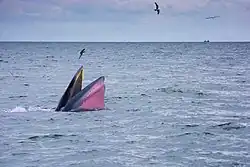In recent years, the bay has become known for its whale watching activities, targeting the endemic, critically endangered populations of cetaceans (Eden's whales, newly described Omura's whales,[22] Chinese white dolphins, and Irrawaddy dolphins showing unique feeding behaviors), and dugongs.[23][24][25] It was first classified by Müller in 1776 as Trichechus dugon.[26] Five species of the sea turtles have been found in the Gulf of Thailand and the Andaman sea coast, including olive ridley turtles, green turtles, hawksbill turtles, loggerhead turtles, and leatherback turtles.[27]