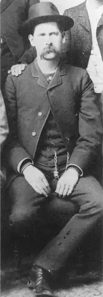 Wyatt had been an assistant marshal when he and policeman James Masterson, along with a few other citizens, fired their pistols at several cowboys who were fleeing town after shooting up a theater. A member of the group, George Hoyt (sometimes spelled Hoy), was shot in the arm and died of his wound a month later. Wyatt always claimed to have been the one to shoot Hoyt, although it could have been anyone among the lawmen.[33][34] Wyatt had developed a reputation as a no-nonsense, hard-nosed lawman, but prior to the gunfight he had been involved in only one other shooting, in Dodge City, Kansas, during the summer of 1878.[26]