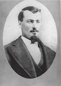 Doc Holliday had a reputation as a gunman and had reportedly been in nine shootouts during his life, although it has only been verified that he killed three men.[40] One well-documented episode occurred on July 19, 1879, when Holliday and his business partner, former deputy marshal John Joshua Webb, were seated in their saloon in Las Vegas, New Mexico. Former U.S. Army scout Mike Gordon got into a loud argument with one of the saloon girls whom he wanted to take with him. Gordon stormed from the saloon and began firing his revolver into the building. Before Gordon could get off his second shot, Holliday killed him. Holliday was tried for murder but acquitted, mostly based on the testimony of Webb.[41][42]