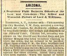 - ^ a b "Yesterday's Tragedy". Tombstone Epitaph. October 27, 1881. Archived from the original on December 13, 2013. Retrieved February 17, 2014.